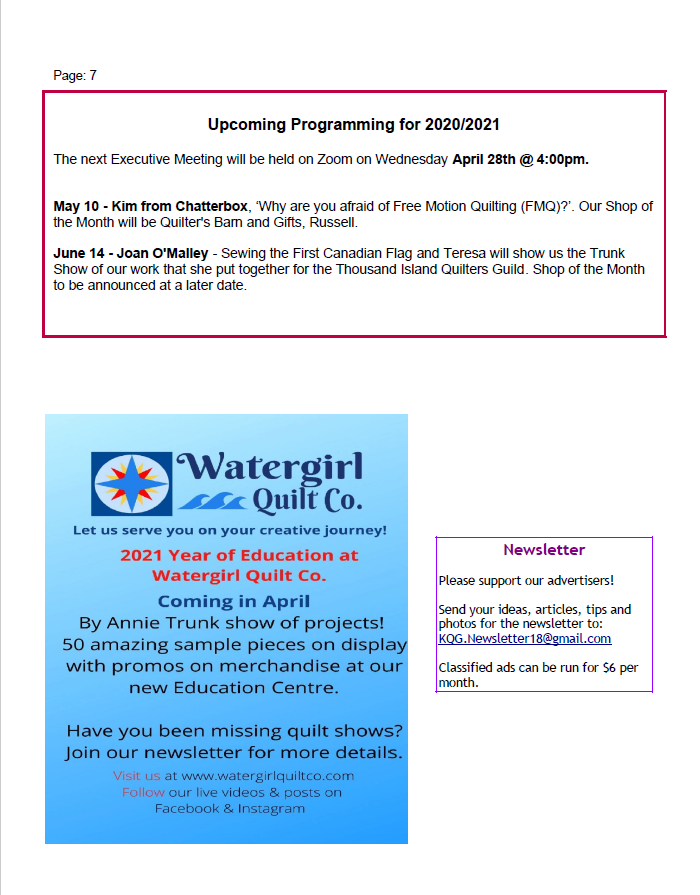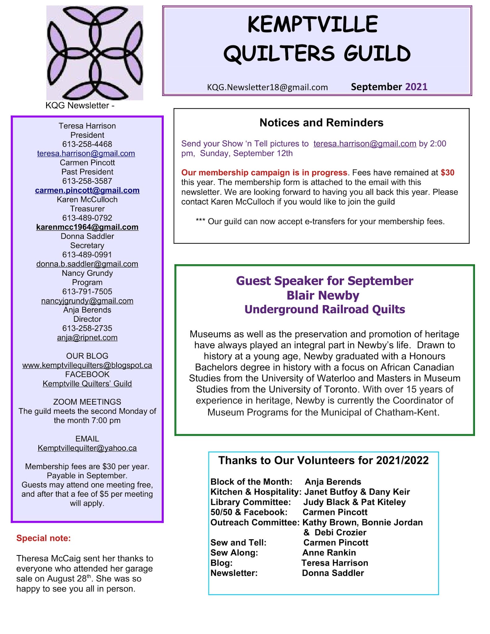 made for the Outreach program of Kemptville Quilters Guild and given to Family and